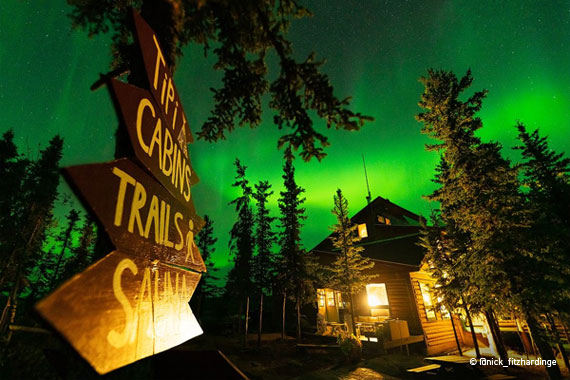 Beste Möglichkeiten zur Beobachtung der Polarlichter bietet auch die Yellow Dog Lodge. Diese komfortable Wildnis-Lodge liegt nur 15 Flugminuten nordöstlich von Yellowknife in traumhafter Lage direkt am Ufer des Graham Lake. Ihre Besitzer, Kathy und Gord Gin, führen die Lodge in der herzlichen Art, die so typisch ist für die Menschen des Nordens. Den Gästen stehen gemütliche Zimmer in der Main Lodge oder private Cabins mit eigenem Kaminofen zur Verfügung. Im Sommer gibt es darüber hinaus rustikale Glamping-Zelte auf dem Schwimmdock. Je nach Jahreszeit, können sich die Gäste die Zeit mit Angeln, Wandern, Kanufahren, Eisangeln, Langlauf, Schneeschuhwandern oder Schneemobil-Fahren vertreiben.